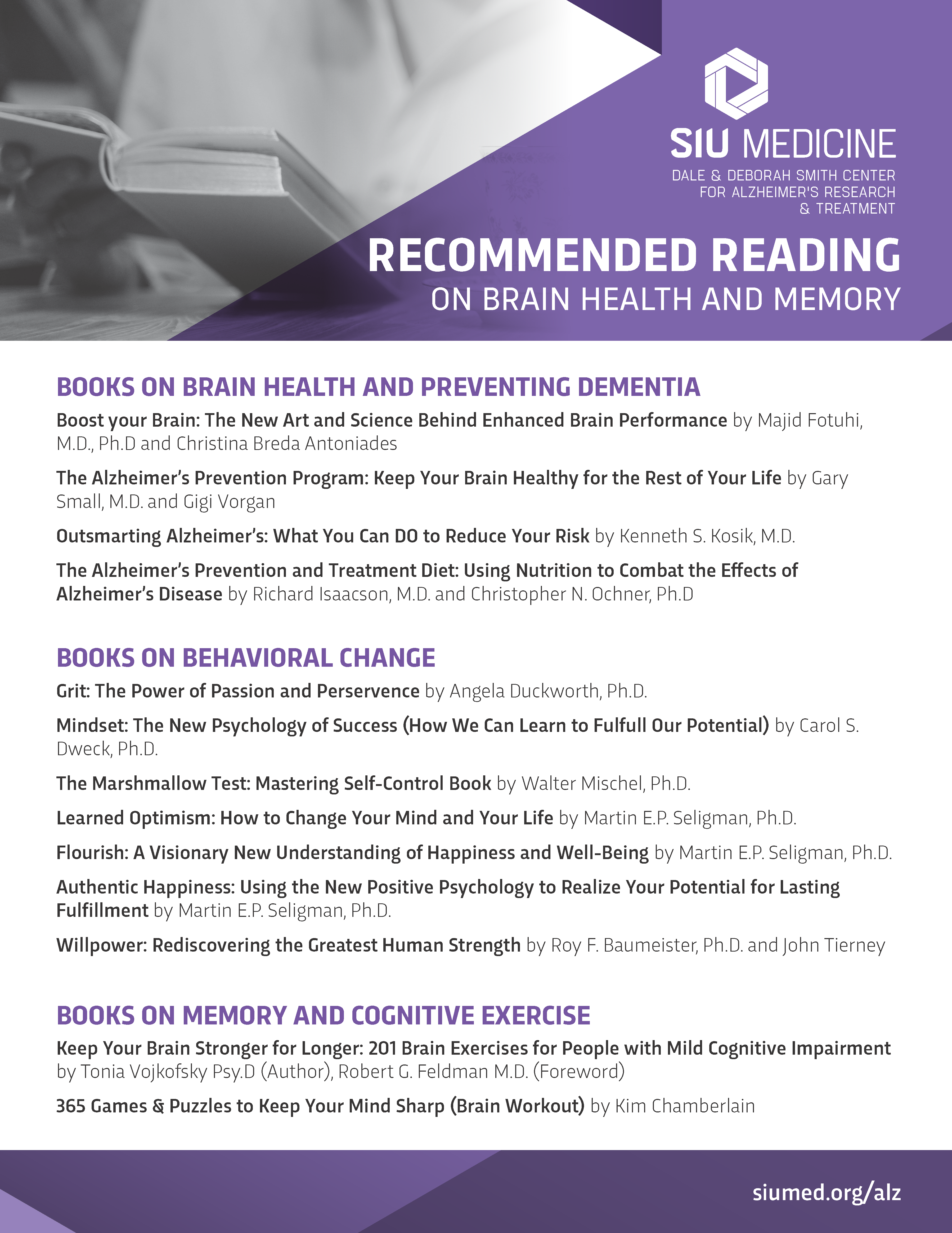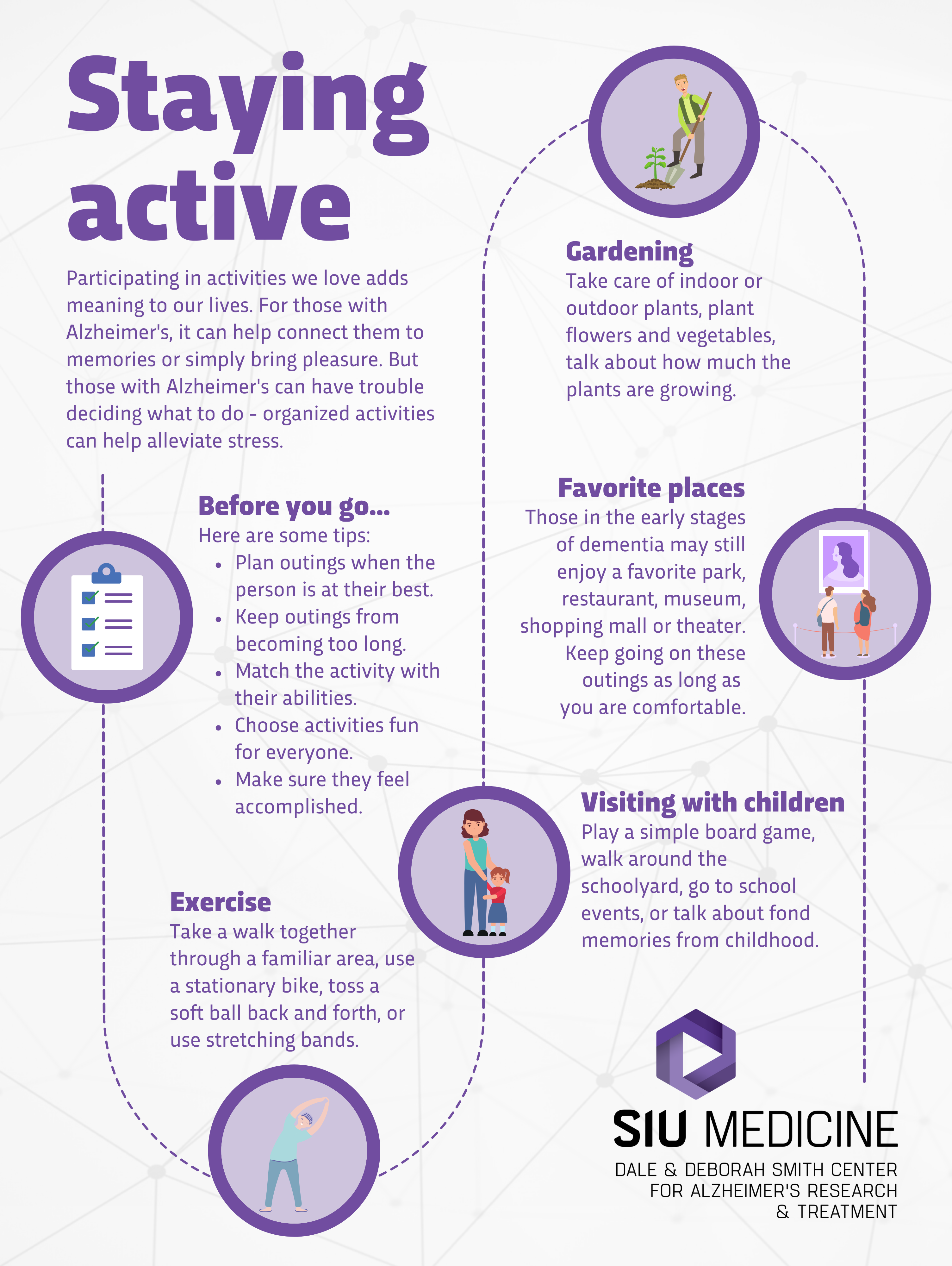 We have a number of informational materials that are available to download and print below. Just click on the topic or the corresponding icon to access the informational sheet on that topic. If you do not have a printer, and would like a printed sheet, these are also available in person at the Smith Alzheimer's Center as well.